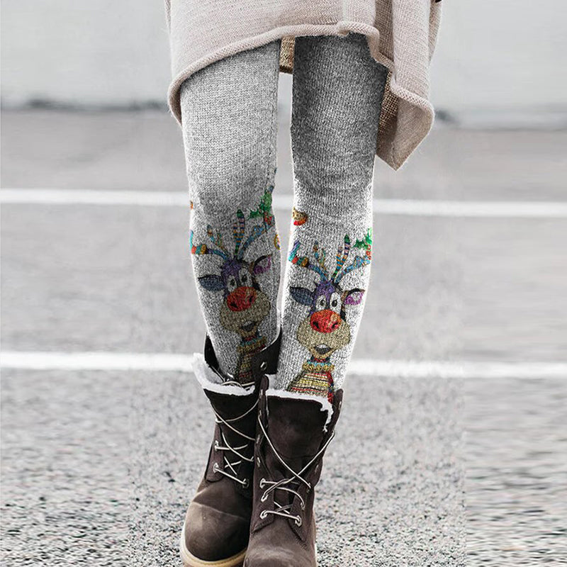 Color Reindeer Pattern Women's Warm Cozy Knit Leggings