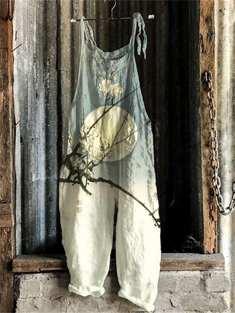 Plum Blossom Full Moon Gradient Japanese Art Jumpsuit