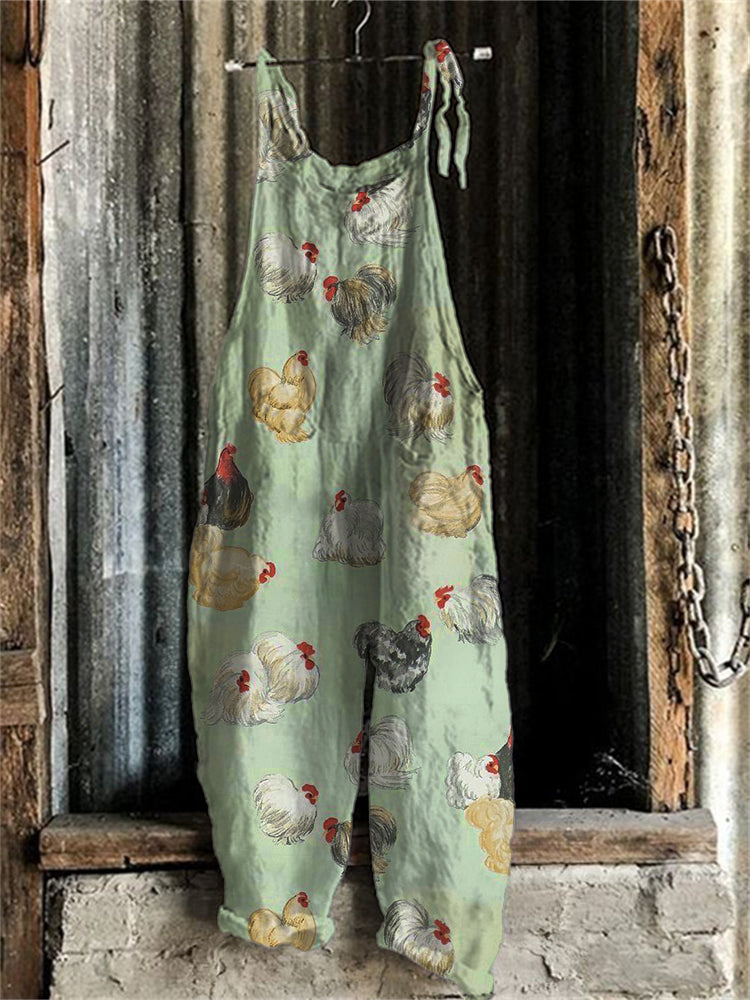 Vintage Chicken Pattern Loose Fit Jumpsuit