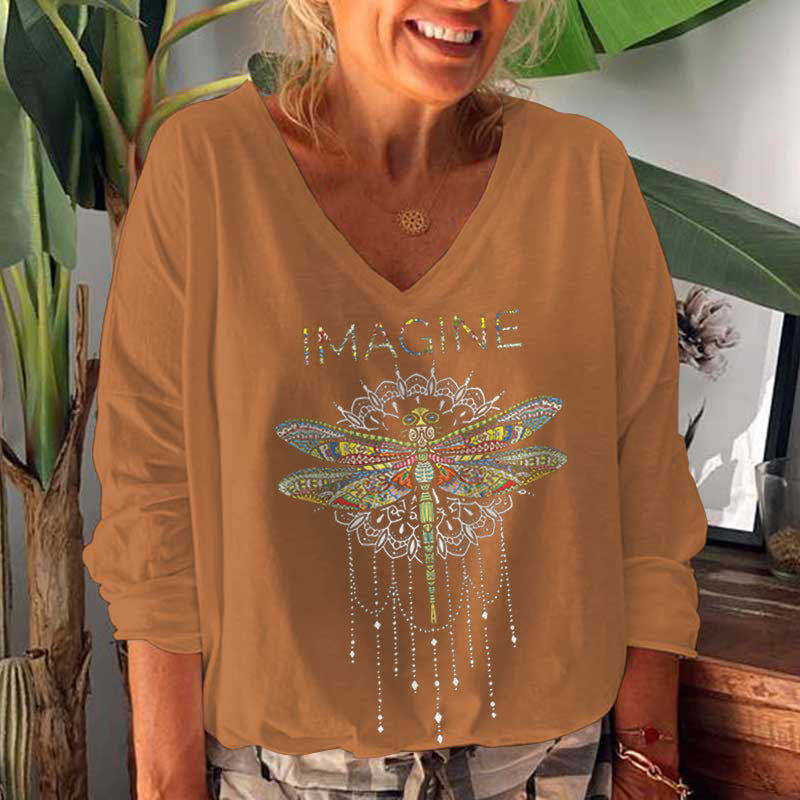Product Name Imagine Featured Dragonfly Printed V-neck Women's  T-shirt