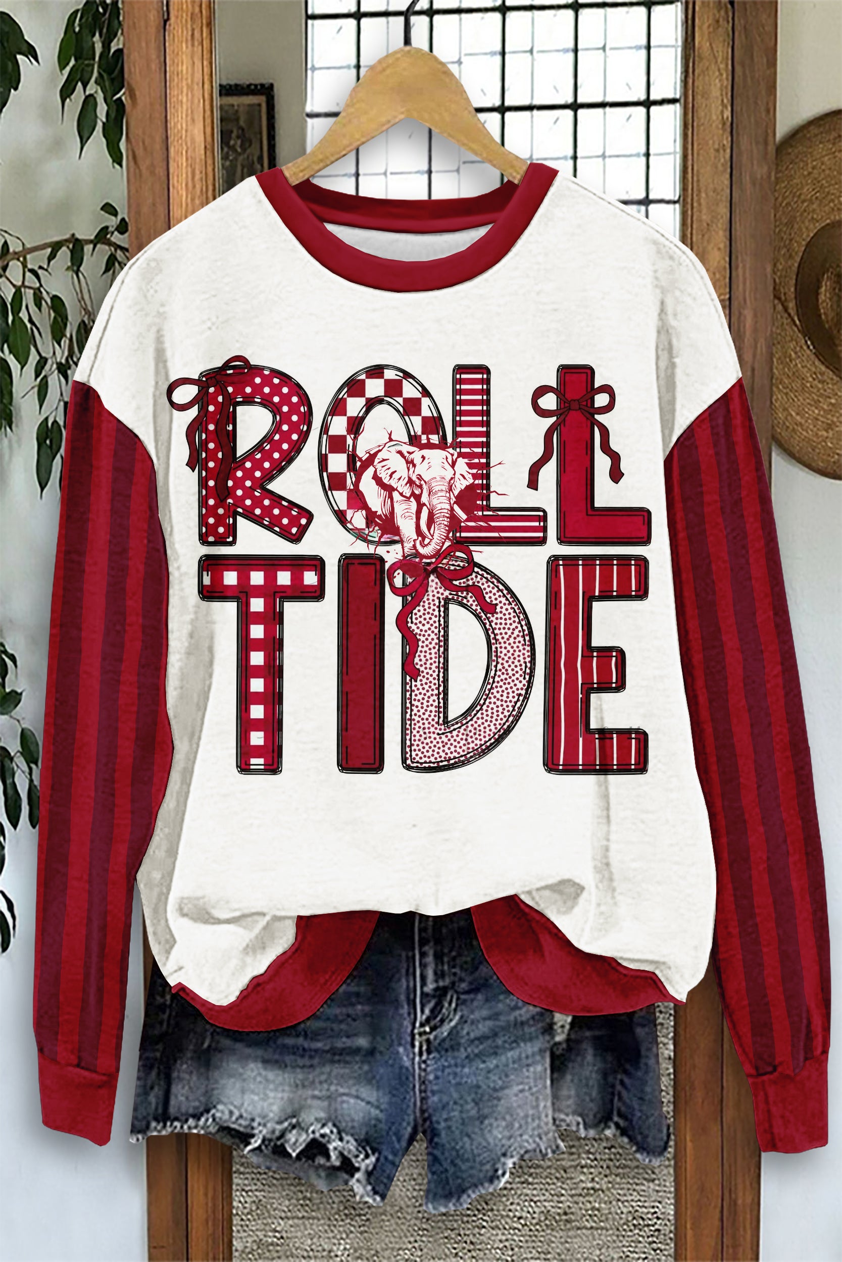 Cute Game Day Red and White Elephant Sweatshirt